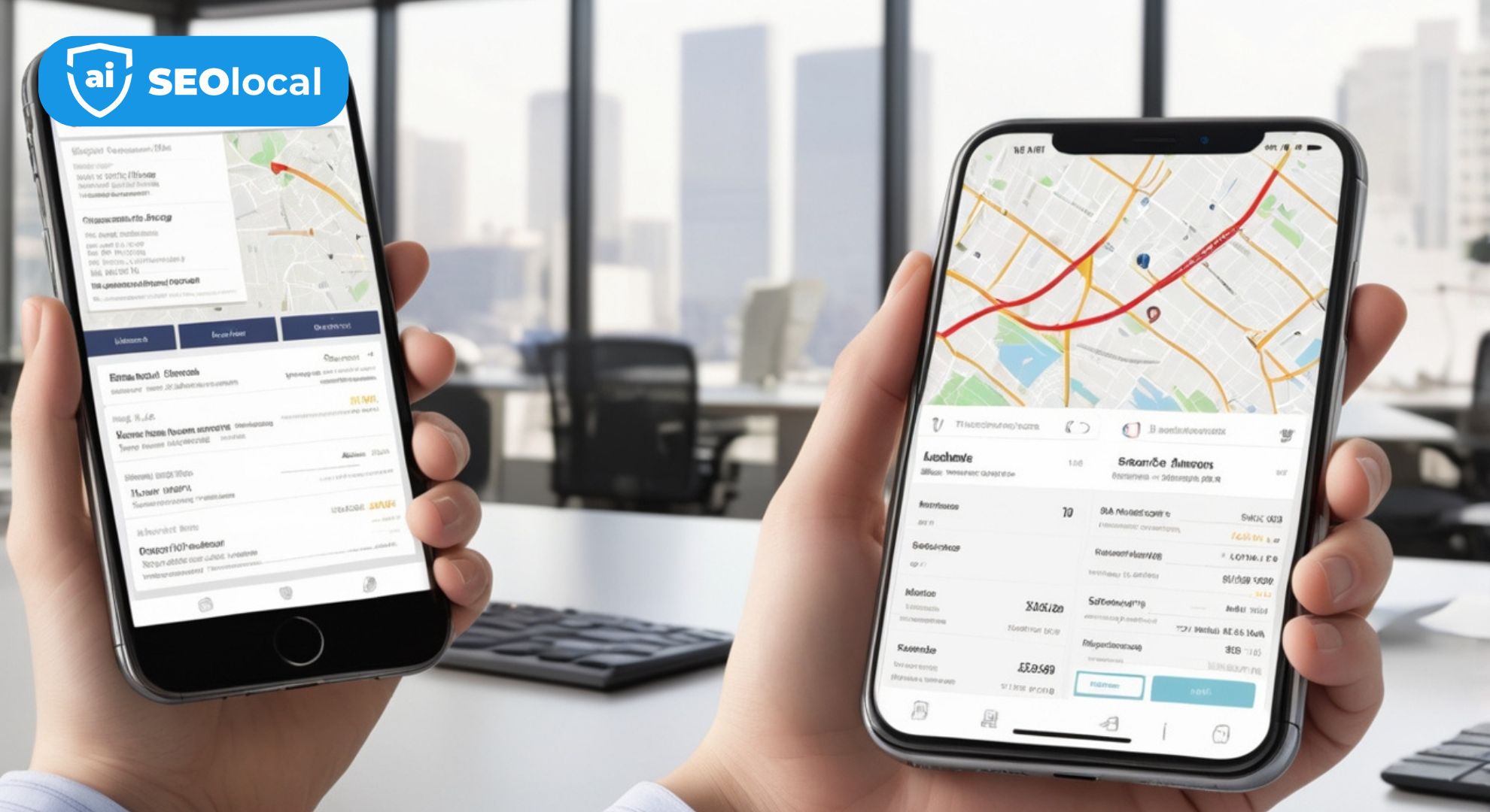 IMAGE PROMPT: A split-screen comparison showing a business’s local search results before and after immediate changes, with updated business information, corrected hours, and improved mobile display on smartphones, set in a modern office environment with natural lighting